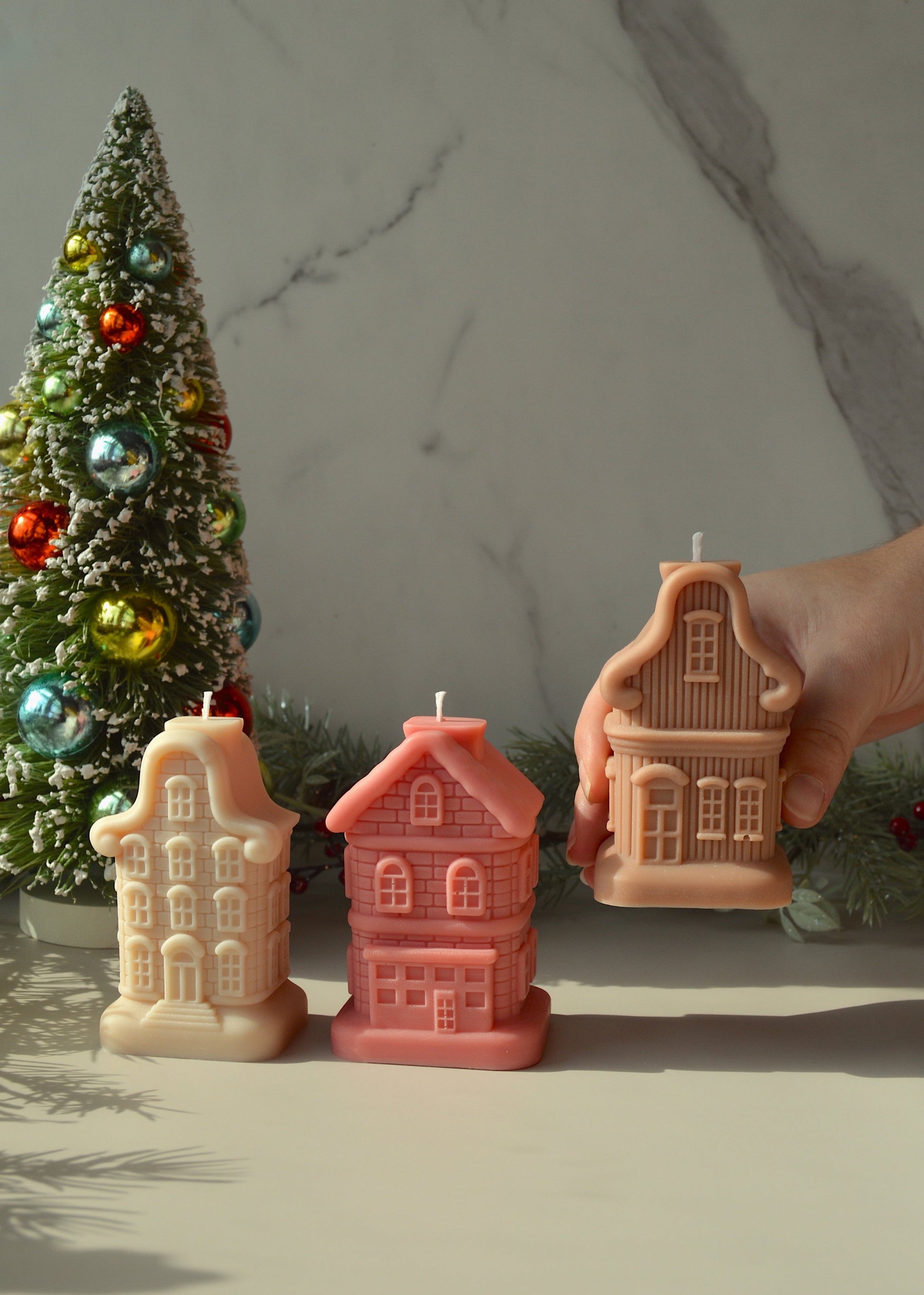 Winter Village Candle Set is the perfect holiday gift! Comes as a set of 3 candles in a gift box. Handmade in small batches with high quality soy and beeswax and toxin free candle dye. These are unscented candles. Net wt. 18oz (510g).